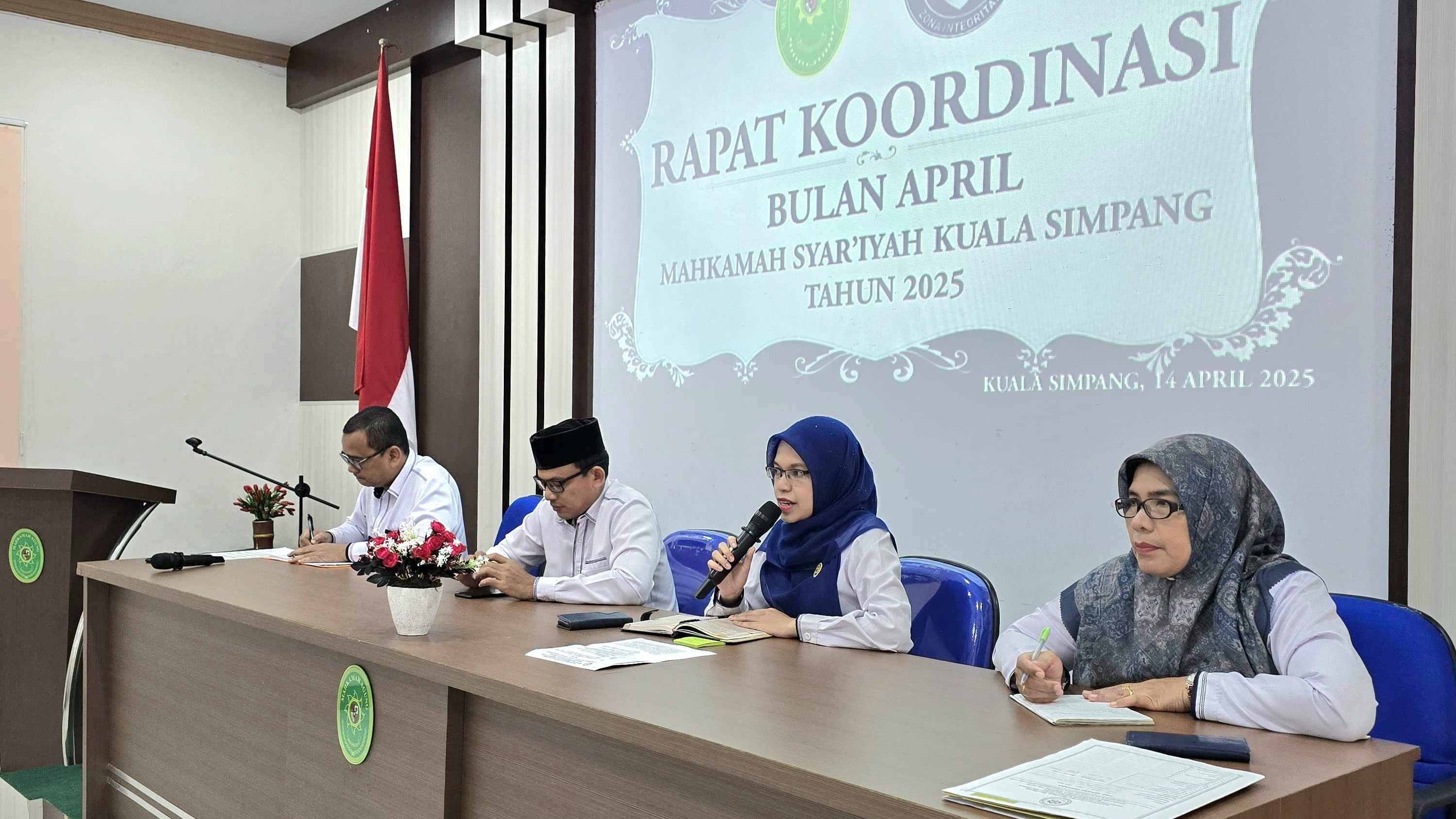 Bertempat di Ruang Aula MS Kuala Simpang dilaksanakannya Rapat Monitoring dan Evaluasi Bulan Maret dan Rapat Koordinasi bulan April Tahun 2025. Rapat tersebut dipimpin langsung oleh Ketua MS Kuala Simpang (Dr. Nusra Arini, S.H.I., M.H.) didampingi oleh Wakil Ketua (Muhammad Reza Fahlepi, S.H.I., M.H.), Panitera (Khalidah, S.Ag., M.H.), dan Sekretaris (Mansur, S.T.). Rapat tersebut juga diikuti oleh Para Hakim, Para Pejabat Struktural dan Pejabat Fungsional serta Para PPNPN MS Kuala Simpang, Senin (14/04/2025).