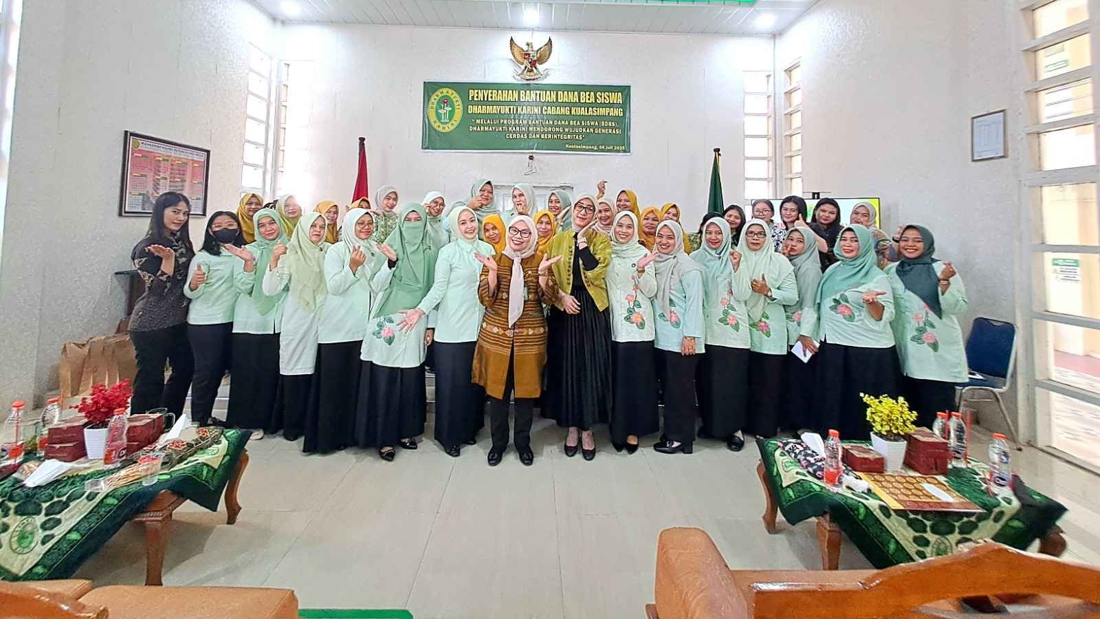 Penyerahan BDBS Tahun 2025 ini mengangkat tema "Melalui Program Bantuan Dana Bea Siswa (BDBS), Dharmayukti Karini Mendorong Wujudkan Generasi Cerdas dan Berintegritas". BDBS merupakan salah satu program kerja dari DyK Cabang Kualasimpang untuk meningkatkan kualitas sumber daya anggota beserta keluarga, diharapkan bantuan yang disalurkan sesuai sasaran dan dapat menjadi motivasi bagi putra dan putri sehingga mendorong untuk terus belajar dan berprestasi.