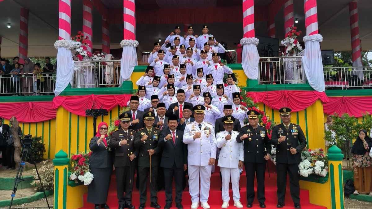 Ketua Mahkamah Syar’iyah Kuala Simpang, Surya Darma Panjaitan, S.H.I, M.H. didampingi Ny. Nurhalimah Surya selaku Ketua Dharmayukti Karini Cab. Kualasimpang mengikuti Upacara Peringatan Hari Ulang Tahun Republik Indonesia Ke-80 yang digelar di Tribun lapangan Upacara Kantor Bupati Aceh Tamiang pada Minggu, 17 Agustus 2025 dengan tema “Bersatu Berdaulat, Rakyat Sejahtera, Indonesia Maju”