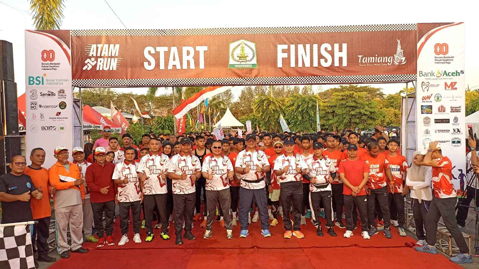 Tampak pula hadir dalam kegiatan tersebut Bupati Aceh Tamiang, Plt. Sekda Aceh Tamiang, Dandim 0117/Aceh Tamiang, Kapolres Aceh Tamiang, Kepala Kejaksaan Negeri Aceh Tamiang, Ketua MPU Aceh Tamiang, Ketua MAA Aceh Tamiang dan para tamu undangan lainnya serta para runners dalam event ATAM RUN 2025 ini.
