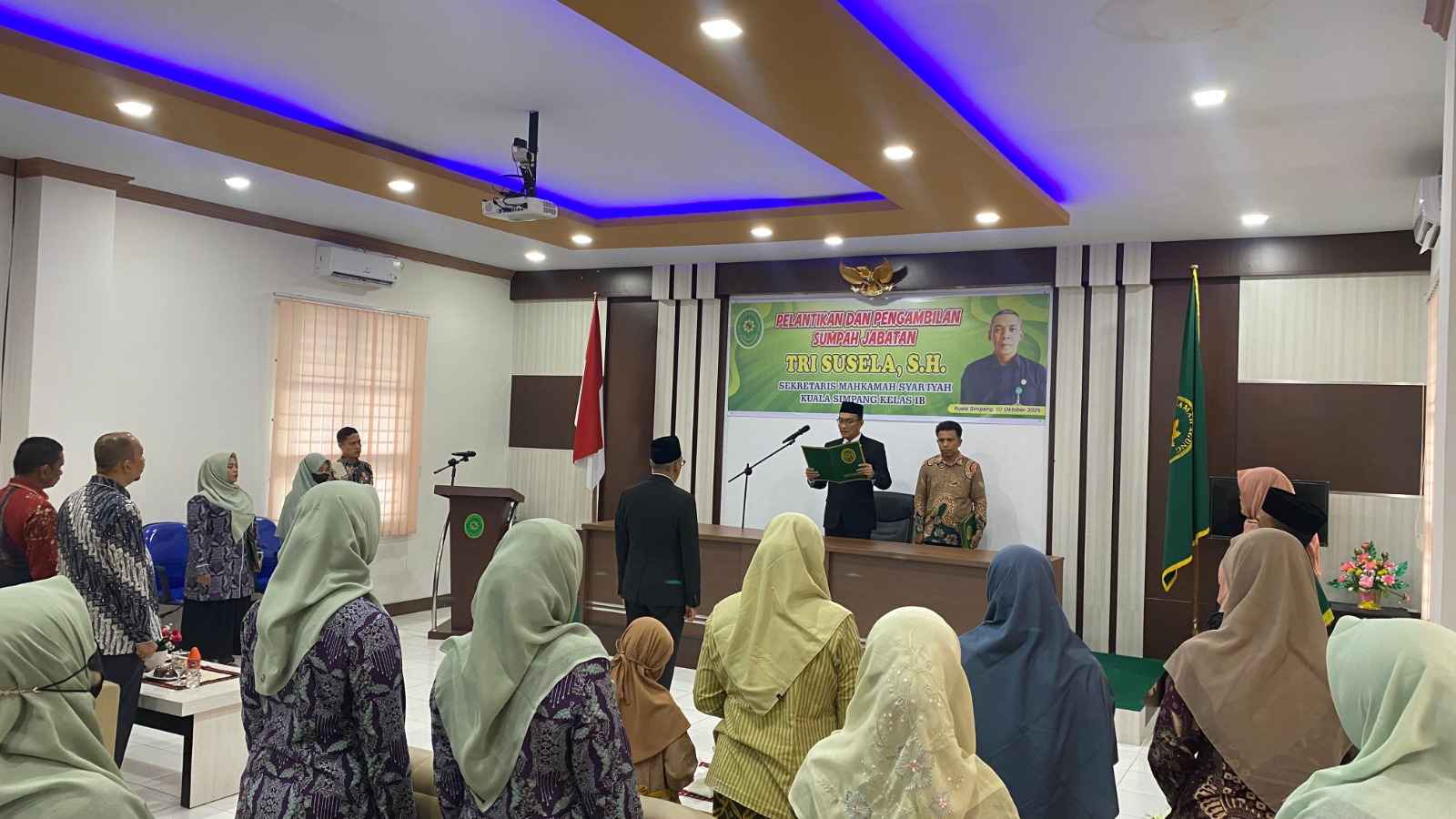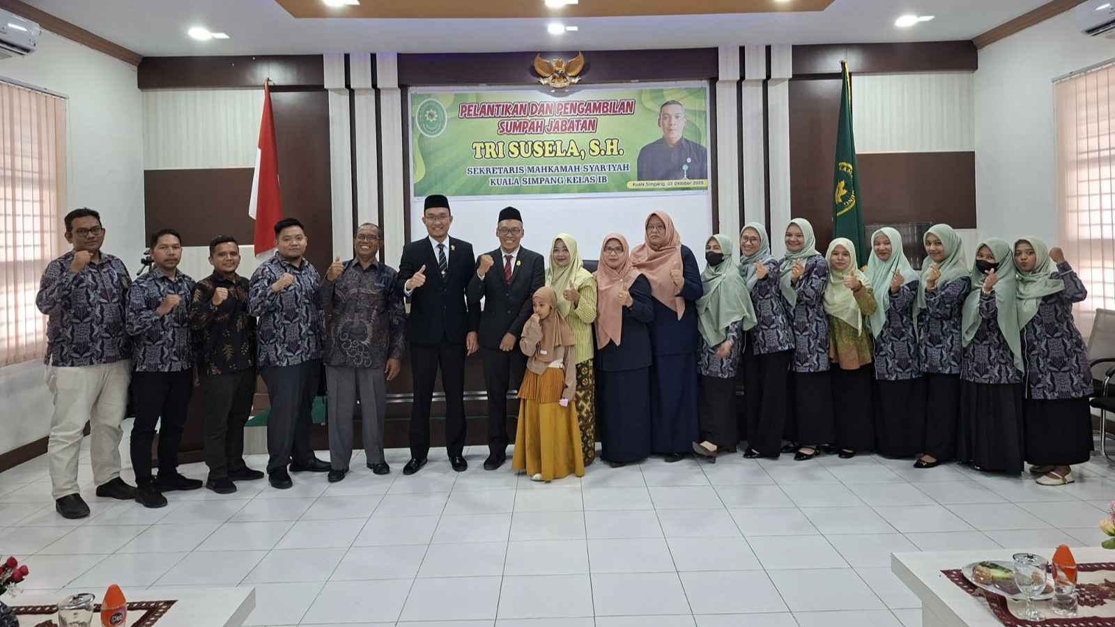 Kamis, 2 Oktober 2025 bertempat di Aula Mahkamah Syar'iyah Kuala Simpang digelar acara Pelantikan Pengambilan Sumpah Jabatan Sekretaris. Pada acara ini Bapak Tri Susela, S.H. yang sebelumnya menjabat sebagai Sekretaris Mahkamah Syar'iyah Lhoksukon Kelas IB, resmi dilantik menjadi Sekretaris Mahkamah Syar'iyah Kuala Simpang Kelas IB.
