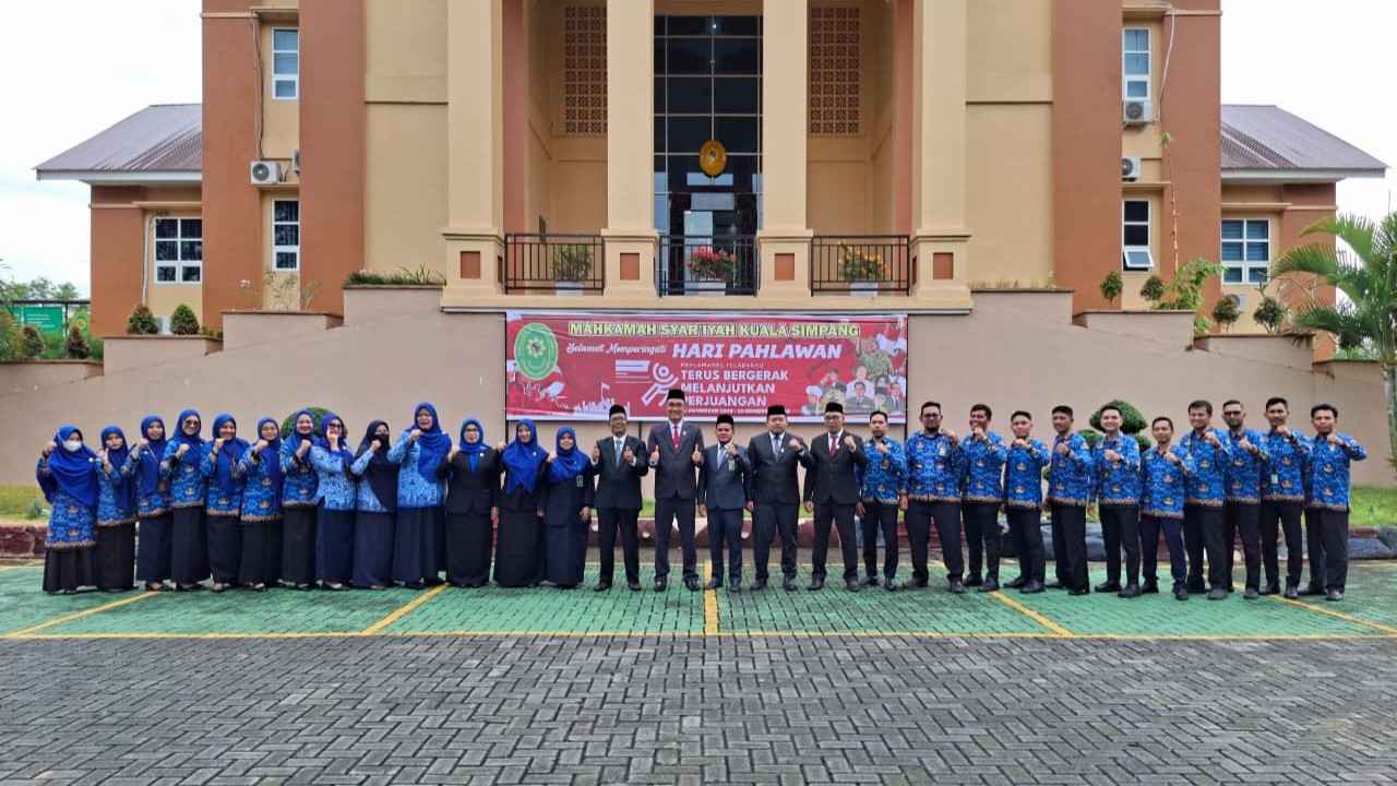 Upacara peringatan hari pahlawan pada tahun ini mengusung tema "Pahlawanku Teladanku, Terus Bergerak Melanjutkan Perjuangan" yang dipimpin langsung oleh Ketua MS Kuala Simpang (Surya Darma Panjaitan, S.H.I., M.H.) diikuti oleh Para Hakim, Panitera dan Sekretaris serta seluruh aparatur MS Kuala Simpang.