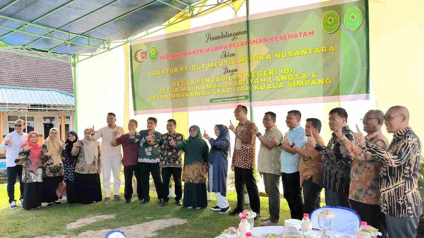 Kegiatan ini dihadiri oleh pimpinan dari masing-masing satuan kerja, yaitu Ketua Mahkamah Syar’iyah Kuala Simpang, Ketua Mahkamah Syar’iyah Langsa, dan Ketua Pengadilan Negeri Idi, beserta pejabat struktural dan fungsional dari ketiga instansi, bersama perwakilan manajemen RSU Cut Meutia diantaranya Direktur PT. Cut Meutia Medika Nusantara, Kepala RSU Cut Meutia Langsa dan segenap jajaran pejabat RSU Cut Meutia Langsa. Kerja sama ini bertujuan untuk meningkatkan akses dan kualitas layanan kesehatan bagi seluruh aparatur Mahkamah Syar’iyah Kuala Simpang, baik dalam hal pemeriksaan kesehatan rutin, pelayanan medis darurat, maupun program promotif dan preventif kesehatan kerja.