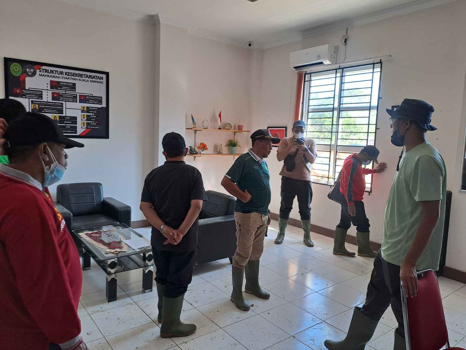 Tim relawan dipimpin langsung oleh Ketua Mahkamah Syar'iyah Aceh, Bapak Dr. Zulkifli Yus, M.H., melakukan tinjauan lokasi untuk melihat langsung kondisi sarana dan prasarana kantor pascabencana, hal ini dilakukan untuk memastikan kebutuhan yang mendesak guna mendukung kelancaran pelayanan kepada masyarakat. Tim relawan disambut oleh Ketua Mahkamah Syar’iyah Kuala Simpang Bapak Surya Darma Panjaitan, S.H.I., M.H. dan aparatur Mahkamah Syar’iyah Kuala Simpang.