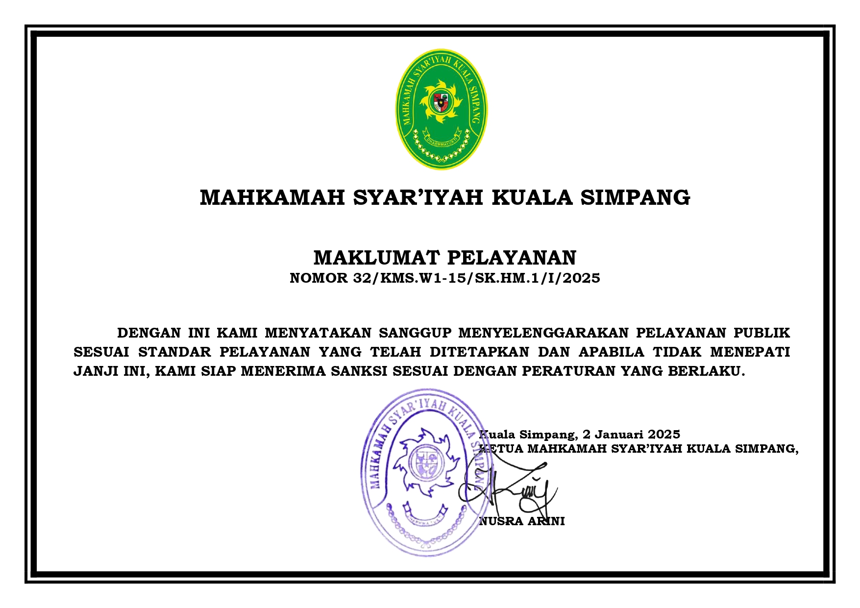 SK Pemberlakuan Maklumat Pelayanan 2025