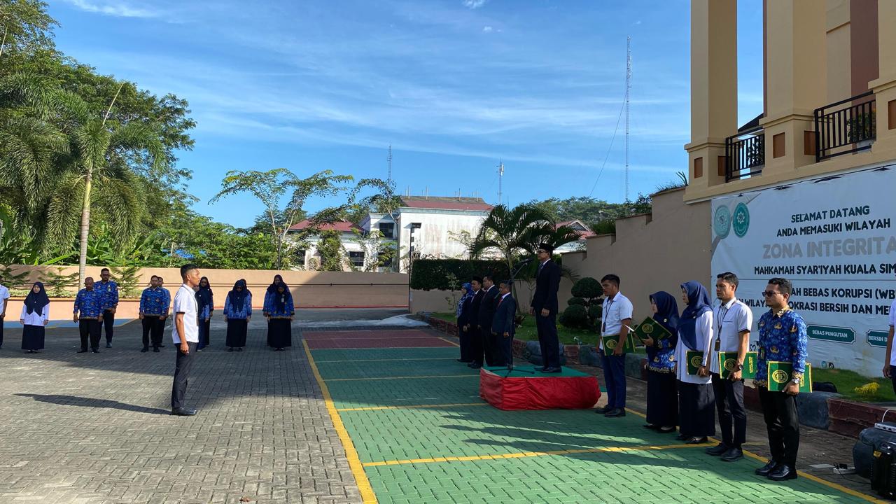 Bertempat di Lapangan Kantor Mahkamah Syar'iyah Kuala Simpang, dilaksanakan Upacara Peringatan Hari Sumpah Pemuda ke-96 Tahun 2024. Bertindak sebagai Inspektur Upacara, Wakil Ketua Mahkamah Syar’iyah Kuala Simpang, Bapak Muhammad Reza Fahlepi, S.H.I., M.H. yang diikuti oleh Para Hakim, Panitera, Sekretaris, Pejabat Struktural Kepaniteraan dan Kesekretariatan, PPNPN, dan Mahasiswa PKL pada Mahkamah Syar'iyah Kuala Simpang.