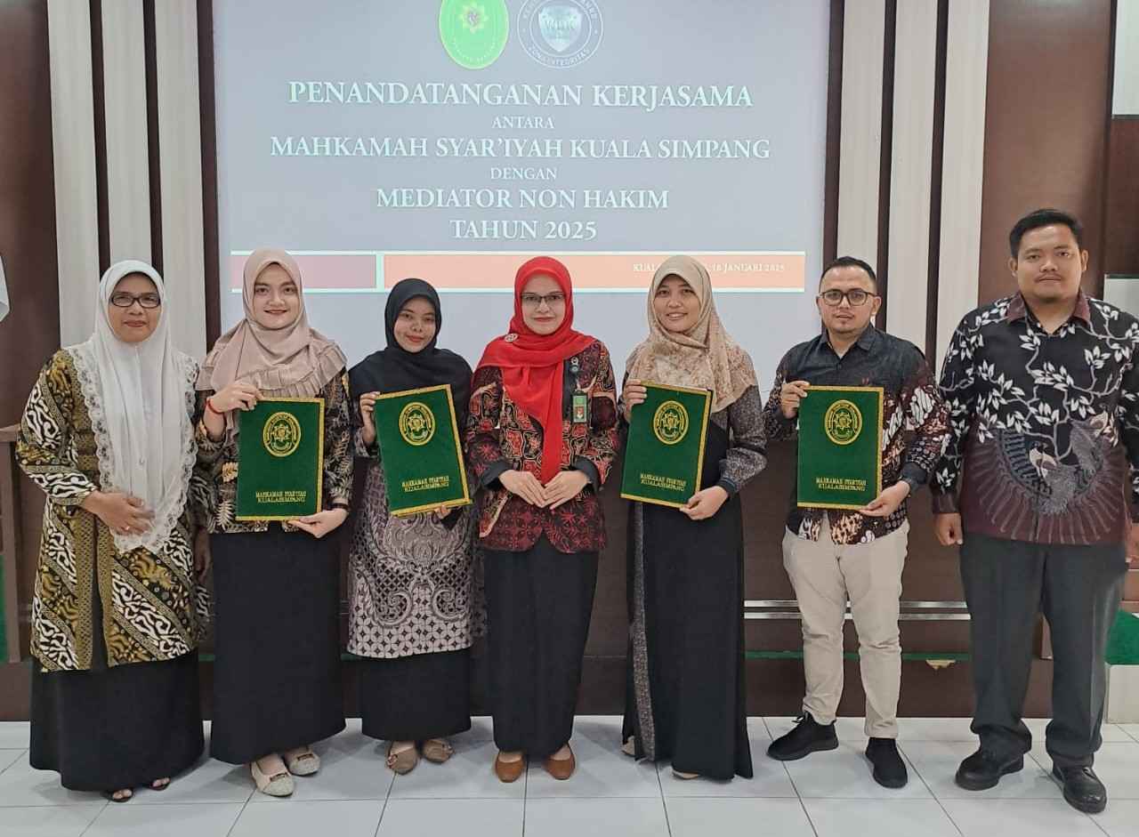 MS Kuala Simpang telah menandatangani perjanjian kerjasama dengan 4 (empat) orang mediator dari 5 (lima) mediator yang ingin bekerjasama dengan MS Kuala Simpang yakni Bapak Maulana Ira, Bapak Muhammad Aulia Abrar, Ibu Nurma Sari, Ibu Fani Maifa dan Ibu Hafiza, 1 (satu) mediator yang belum bertandatangan perjanjian kerjsama akan dilaksanakan pada kesempatan berikutnya.
