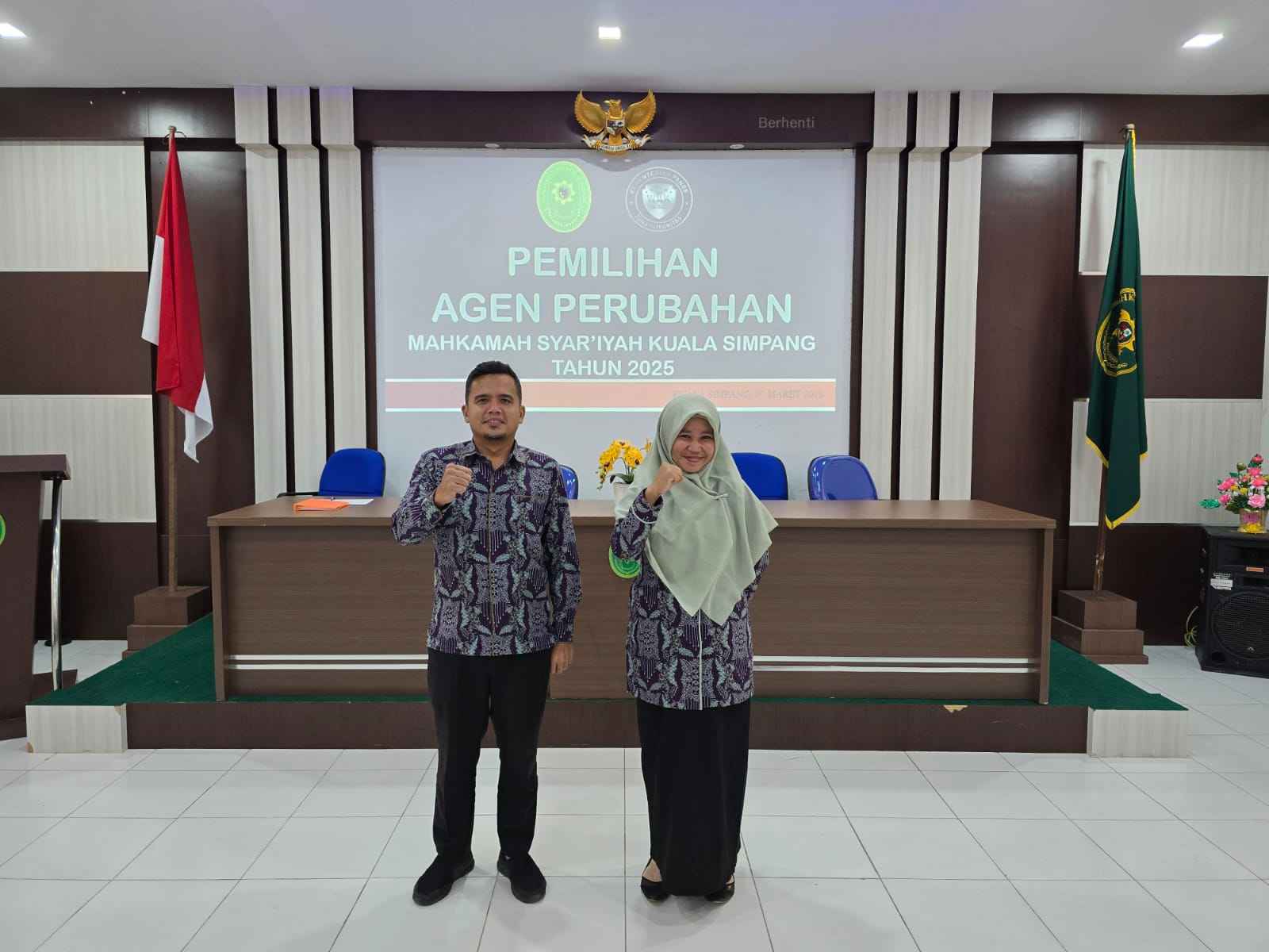 Terpilihnya 2 (dua) kandidat terbaik yaitu Ahmad Arif Daniel, S.H.I., M.Ag. (Hakim) dan Devi Amanda Sari, A.Md.A.B. (Klerek - Pengelola Penanganan Perkara) dengan harapan semoga memberikan kontribusi nyata dalam mendorong perubahan positif dan meningkatkan kualitas pelayanan di Mahkamah Syar'iyah Kuala Simpang. Peran yang diemban sebagai Agen Perubahan sangat vital dalam memperbaiki sistem kerja dan membangun komunikasi yang lebih baik antar pegawai.