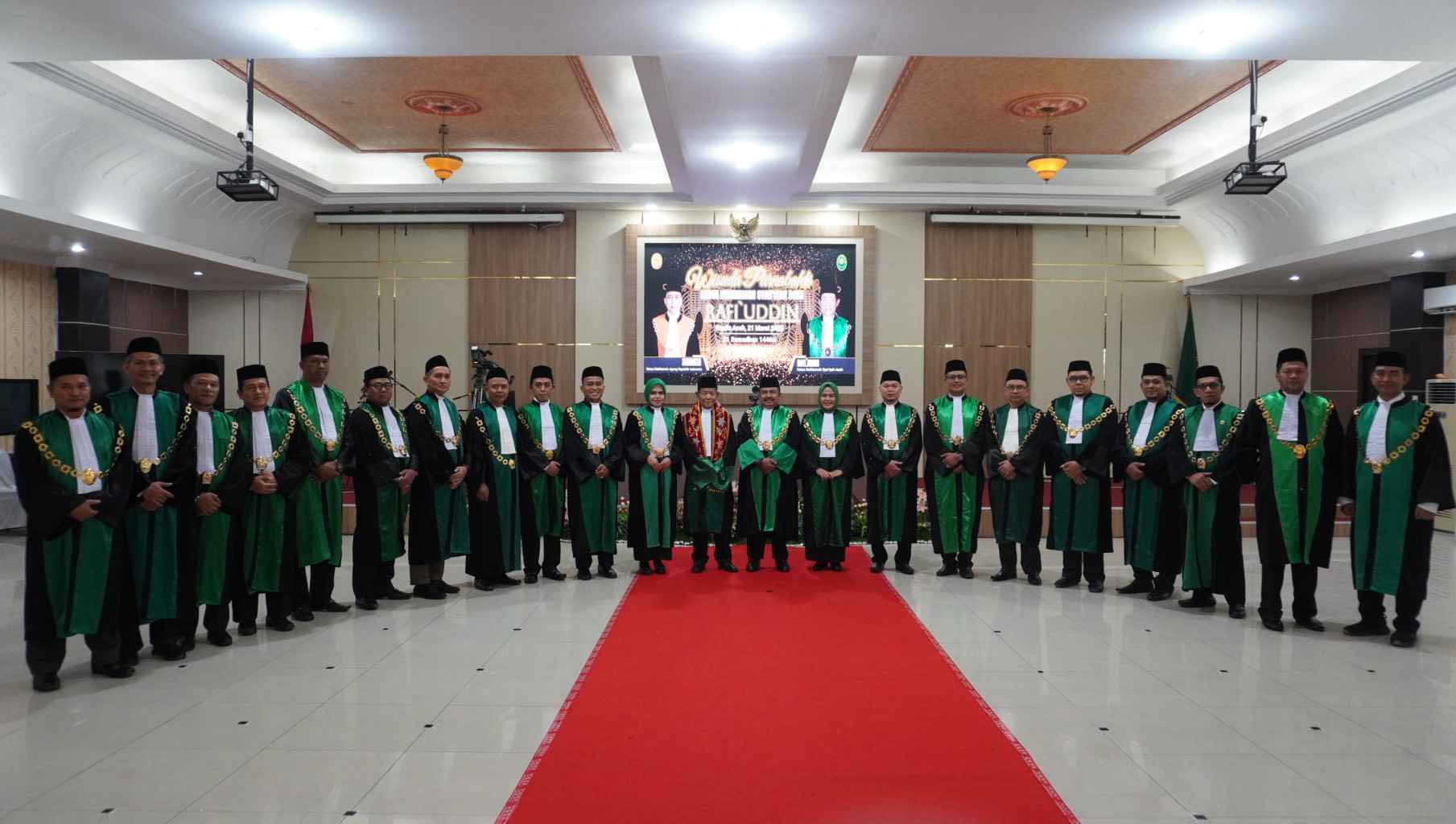 Ketua Mahkamah Agung RI melepas secara resmi dalam suatu upacara Purnabakti. Dalam sambutannya, Ketua Mahkamah Agung menyampaikan penghargaan setinggi-tingginya atas dedikasi dan pengabdian Bapak Rafi’ Uddin, selama puluhan tahun mengabdikan diri dan jiwanya untuk dunia peradilan. Di akhir sambutannya, Ketua Mahkamah Agung berpesan agar Bapak Rafi’ Uddin tetap menjaga silaturahmi dengan insan peradilan dan Mahkamah Agung, meskipun telah memasuki masa purnabakti. “Kita tetaplah satu keluarga besar dalam dunia peradilan,” ujarnya. Dengan pelepasan ini, Dr. Drs. Rafi’ Uddin, M.H. resmi menutup babak pengabdiannya di dunia peradilan setelah empat dekade yang penuh dedikasi. Semoga jejak langkah dan kontribusinya menjadi inspirasi bagi generasi penerus di Mahkamah Syar’iyah dan peradilan Indonesia.