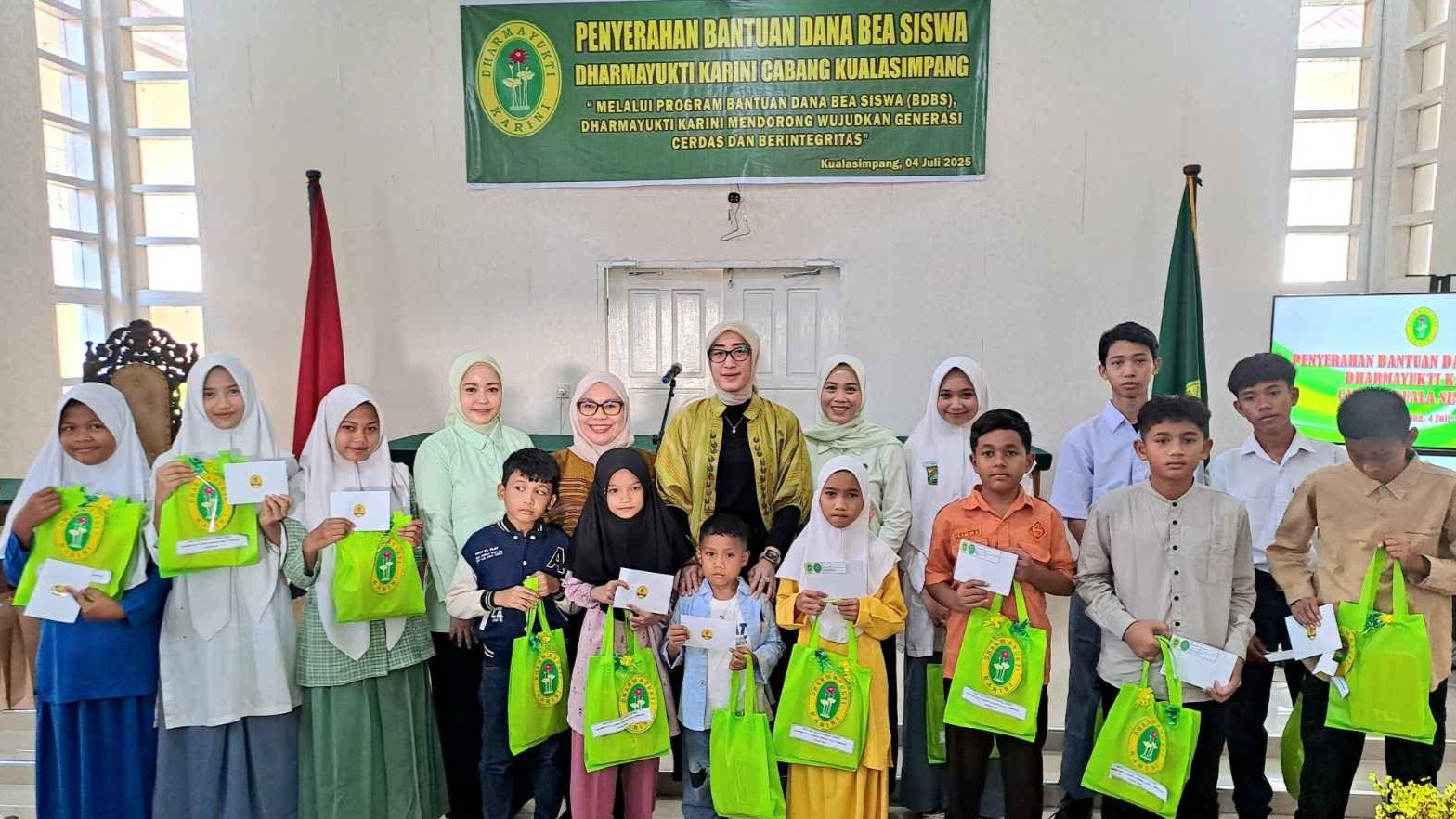 Penyerahan BDBS Tahun 2025 ini mengangkat tema "Melalui Program Bantuan Dana Bea Siswa (BDBS), Dharmayukti Karini Mendorong Wujudkan Generasi Cerdas dan Berintegritas". BDBS merupakan salah satu program kerja dari DyK Cabang Kualasimpang untuk meningkatkan kualitas sumber daya anggota beserta keluarga, diharapkan bantuan yang disalurkan sesuai sasaran dan dapat menjadi motivasi bagi putra dan putri sehingga mendorong untuk terus belajar dan berprestasi.