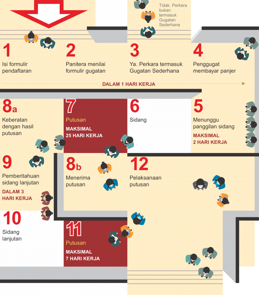 - Penggugat dan tergugat dalam gugatan sederhana berdomisili di daerah hukum Pengadilan yang sama.